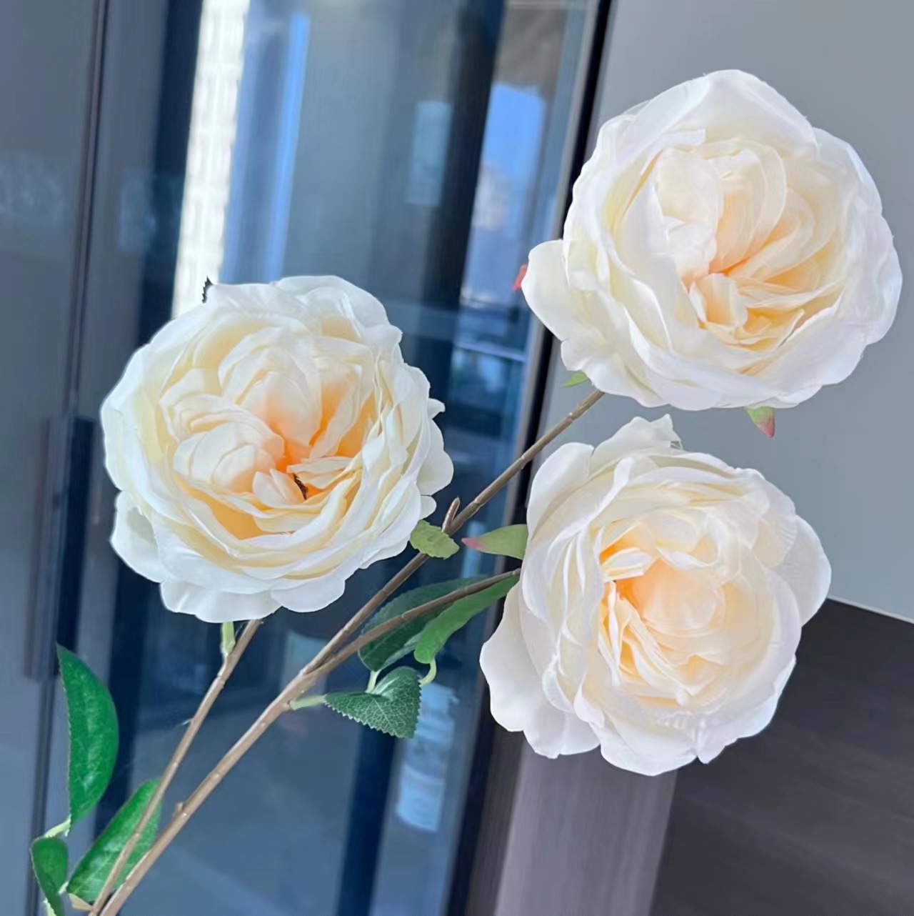 Factory Direct Sales Single Three Head Austin Wedding Decoration Diy Flower Material Flower Art Indoor And Outdoor Decoration Simulation Plastic Flowers